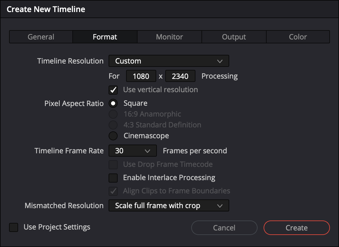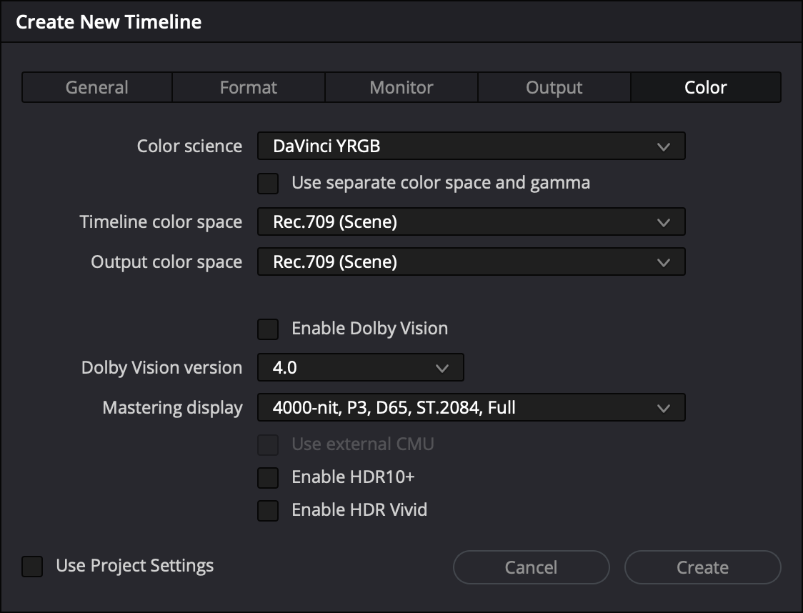 这里使用达芬奇来处理,首先新建一条符合自己屏幕设备分辨率的时间线,注意色彩空间是Rec. 709或者你熟悉的其他SDR色域