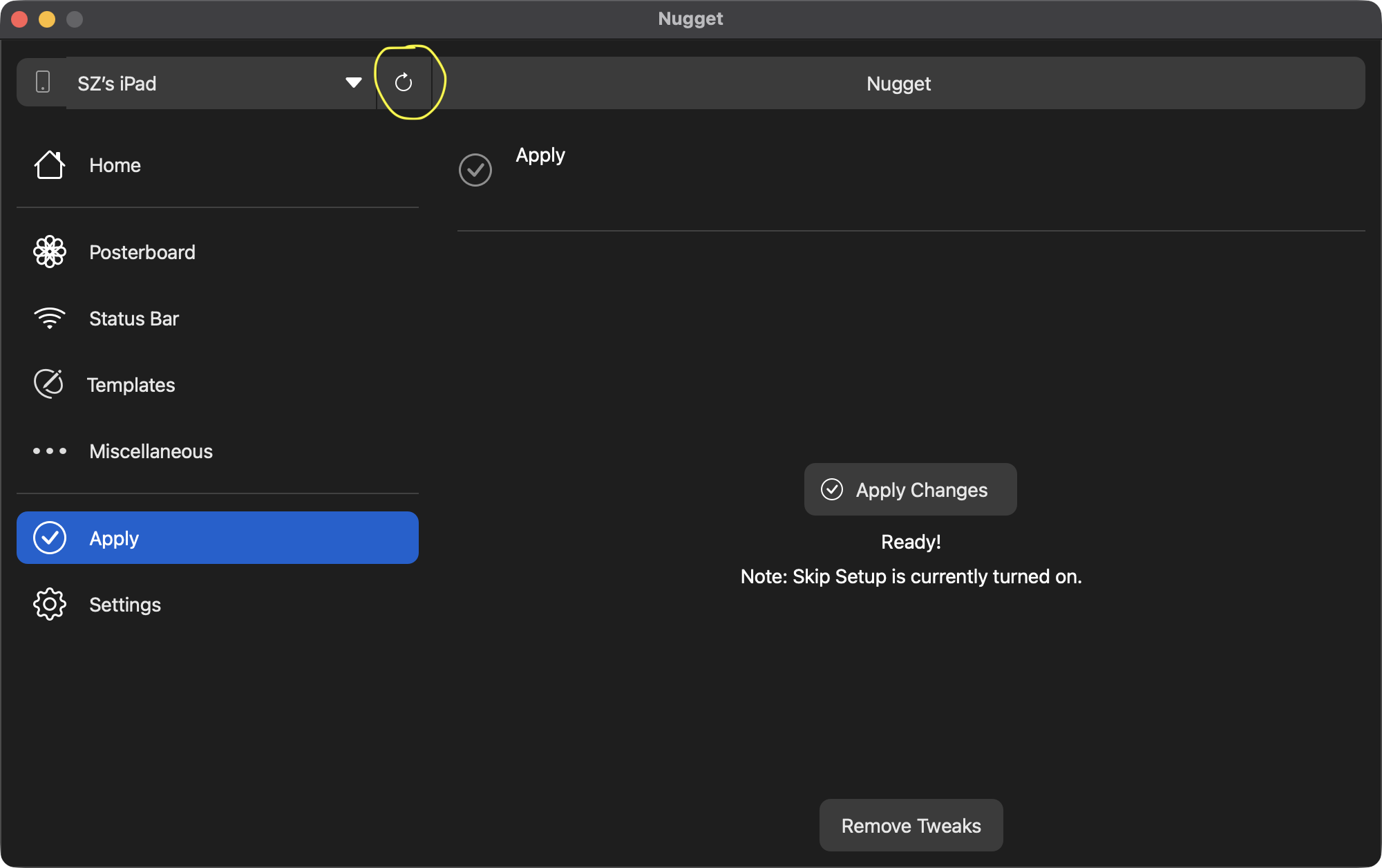 最后就是Apply应用设置了,如果出现The session is terminated的报错,那是因为鉴权过期了,点击顶上设备名称旁边的刷新按钮,然后再iOS设备上重新信任计算机并输入密码就好了