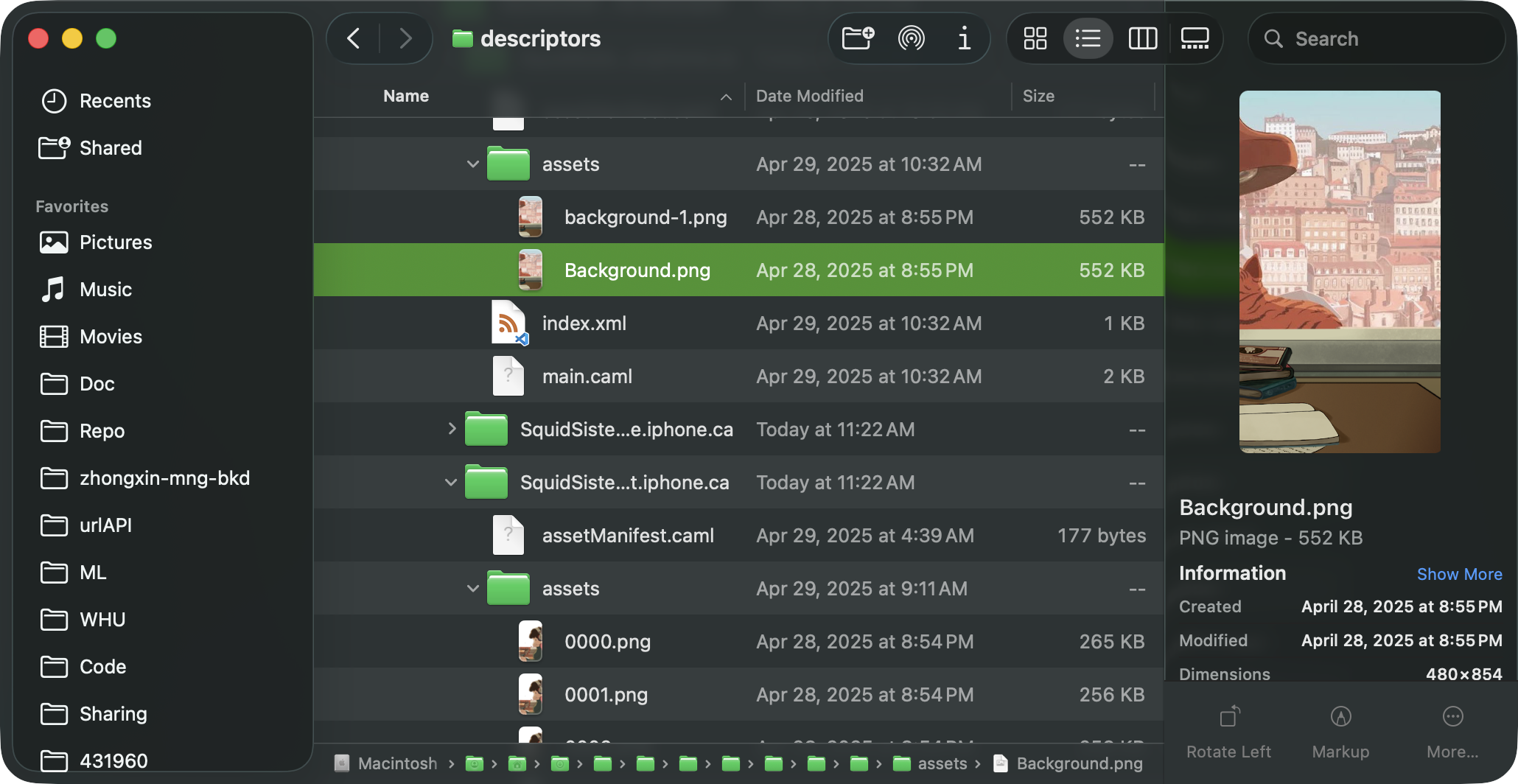 这有可能是iOS帮我们抠好的,但是好像并不是这样。我们给它下下来,然后解包,可以发现有背景和前景两个部分